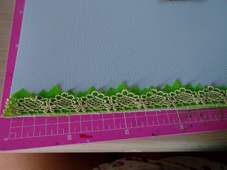Primeiro eu cortei uma aba exatamente da largura da régua de metal.Depois colei um cardstock gelo.